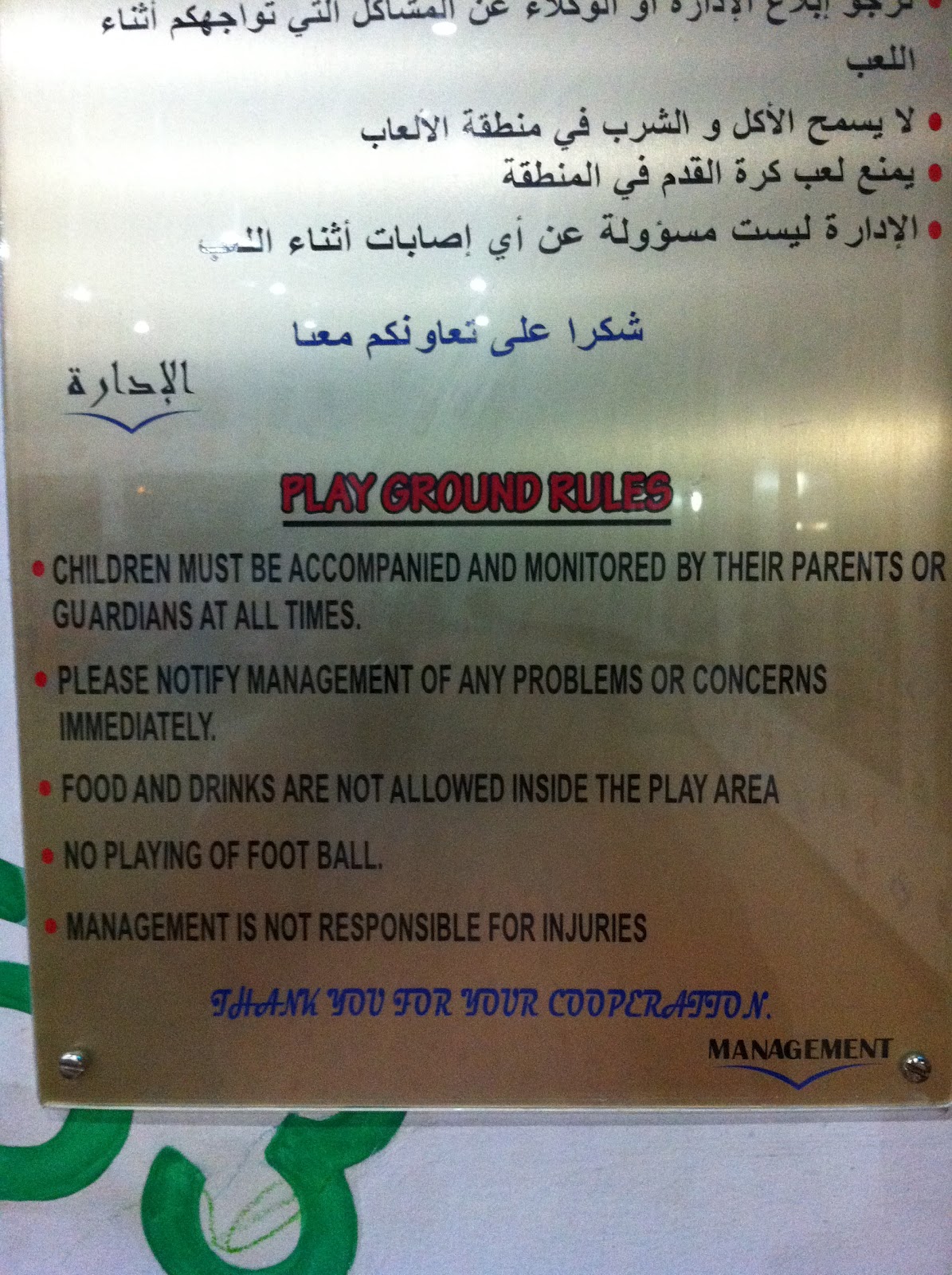 and here's more sign to emphasize the rule - DON'T PLAY FOOTBALL IN THE PLAY AREA! |